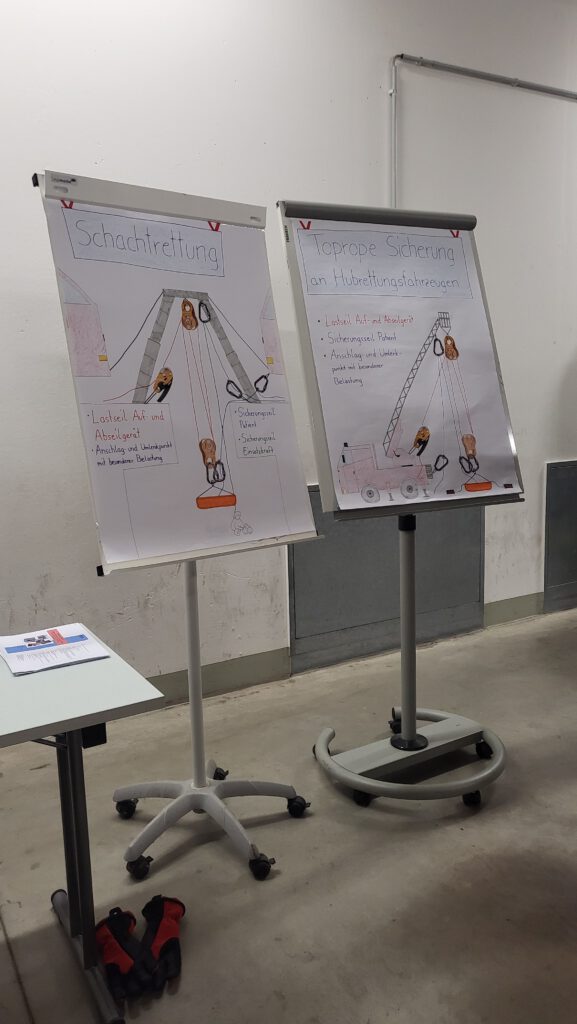 Im weiteren Verlauf beschäftigten wir uns intensiv mit unseren Gerätesätzen Absturzsicherung, Auf- und Abseilgerät sowie dem Rollgliss. Diese Systeme dienen sowohl der Sicherung von Einsatzkräften in absturzgefährdeten Bereichen als auch dem kontrollierten Auf- und Abseilen.