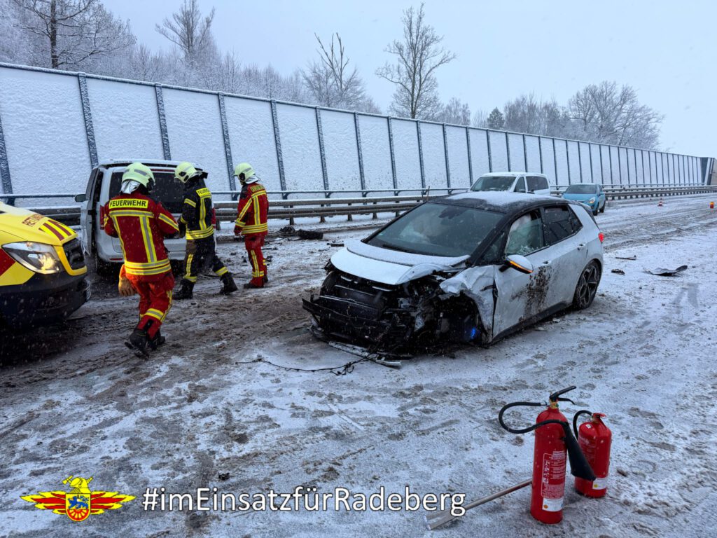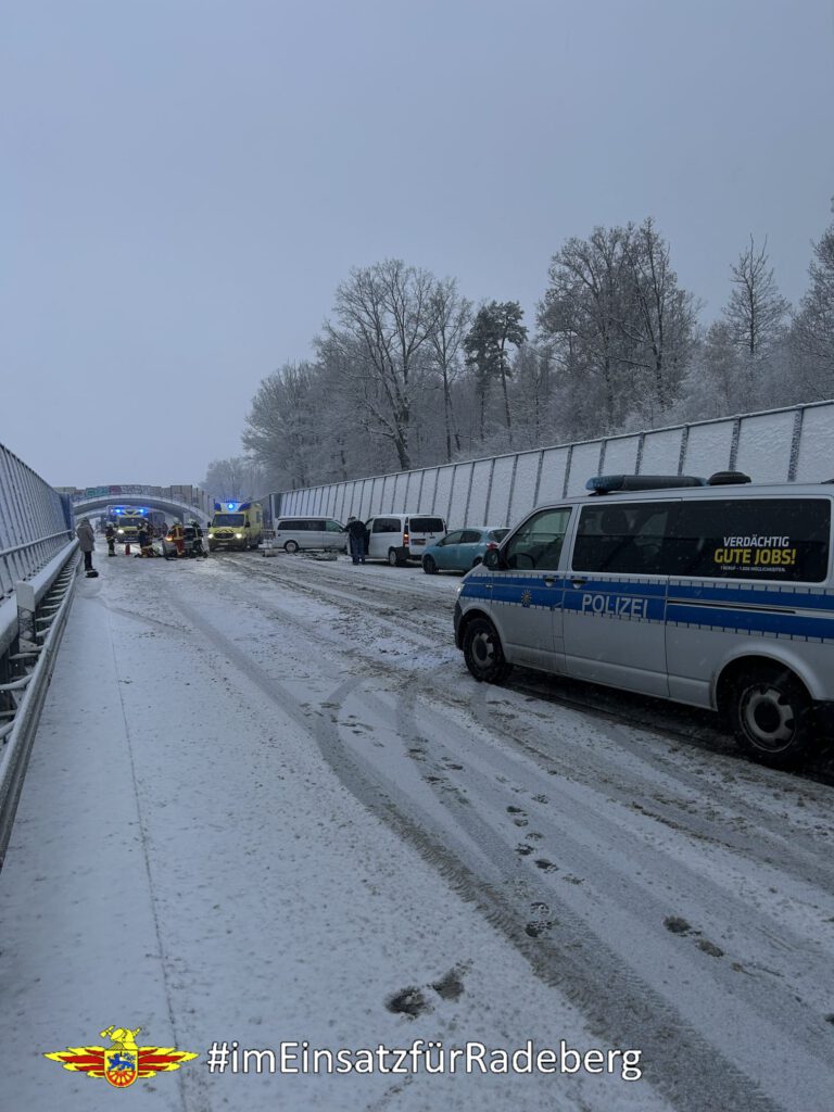 Es kam zu einem Verkehrsunfall zwischen mehreren Fahrzeugen. Die Fahrbahnen wurden gesperrt und auslaufende Betriebsstoffe wurden mittels Bindemittel gebunden. Weitere Maßnahmen waren durch die Feuerwehr nicht notwendig. Die Einsatzstelle wurde an die Polizei übergeben.